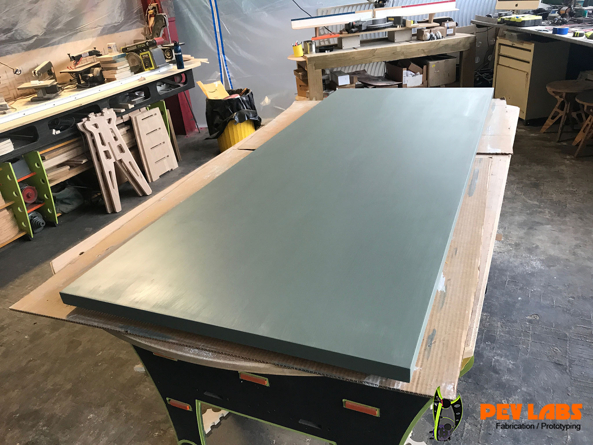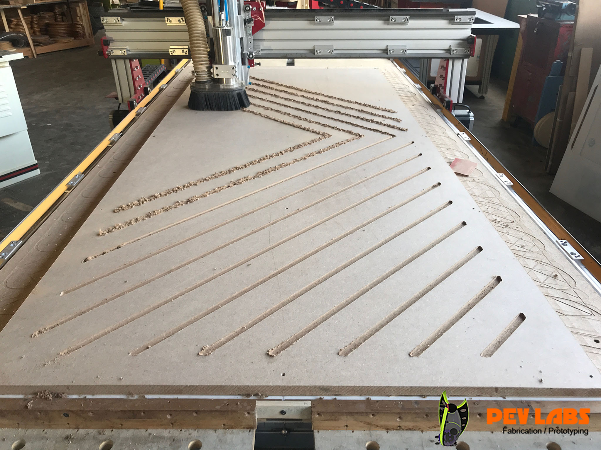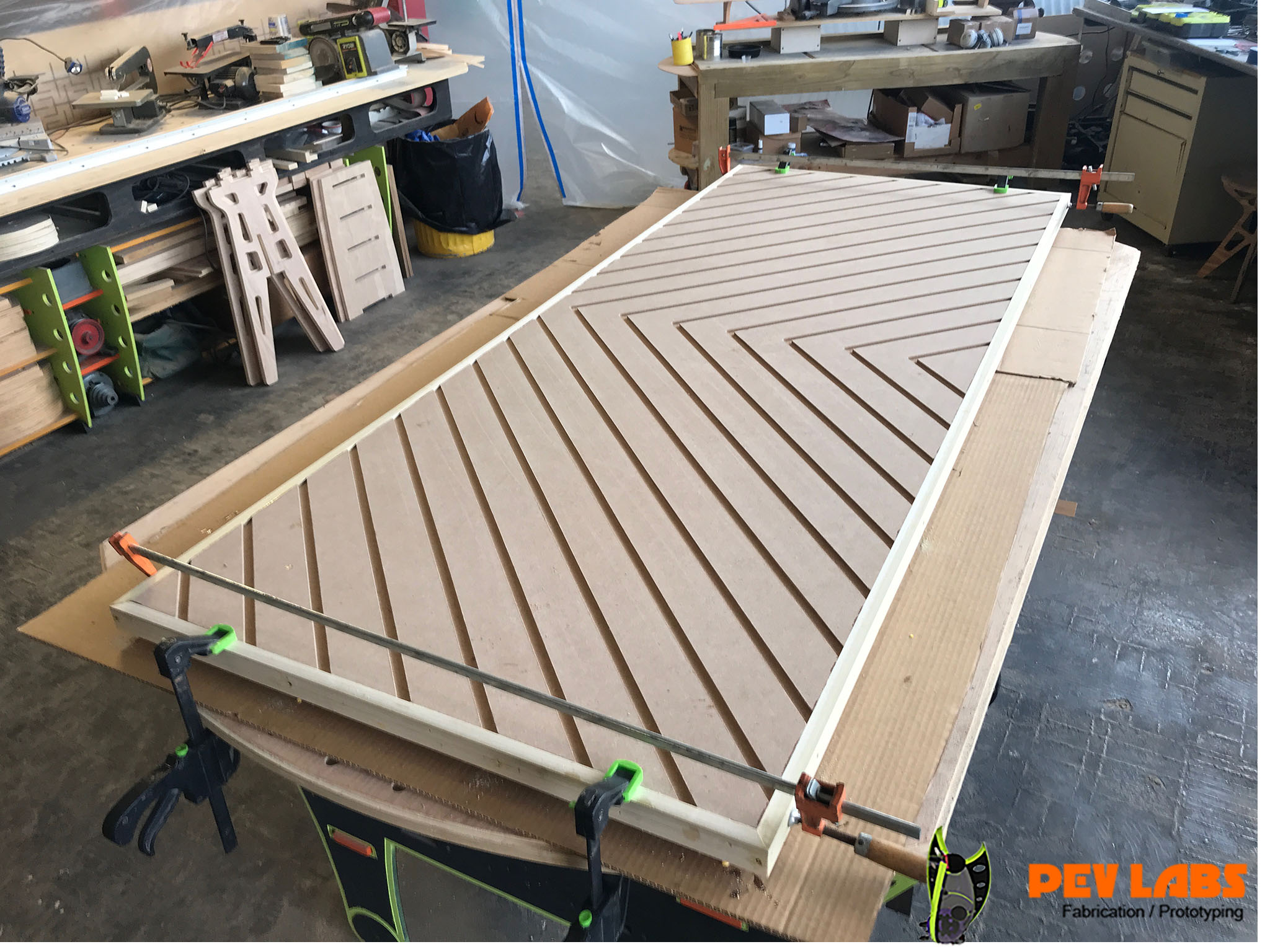 The diagonal pattern of the face was milled with our CNC Router.