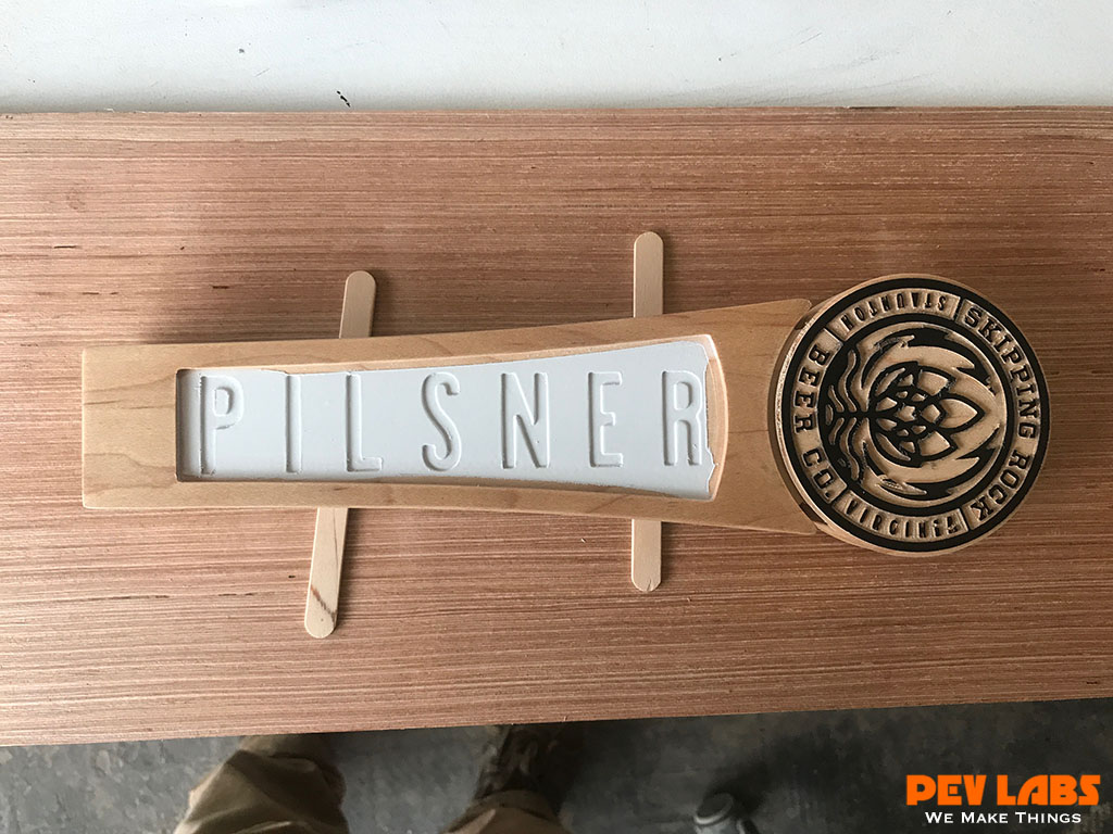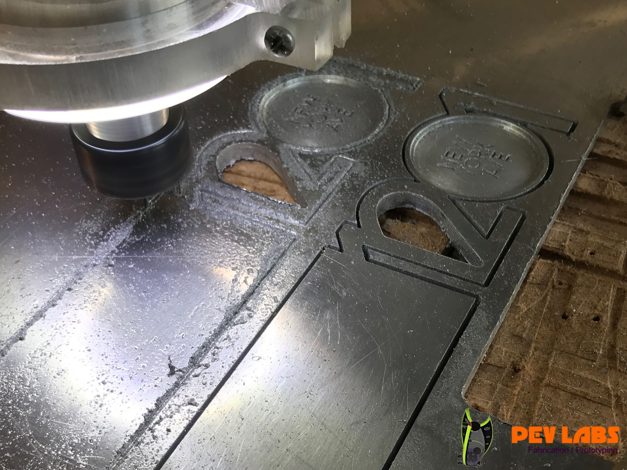 PEV Labs offers affordable CNC Milling Engraving Services for commercial branded products, hobby projects and individual personal projects. Engraving is the practice of incising a design or text into the surface of some kind of material. CNC large format engraving of sheet stock, objects, signs, plaques and more can be done with our gantry based CNC Machine. We carve designs and text in wood, plastics and non-ferrous metals, but reach out of you have another material request. Our machine can mill up to 4' by 8' sheet stock though most milling and engraving jobs are typically much smaller. The engraving machine can inset or mill out areas to leave a raised detail. Carbon Dioxide Lasers are good for very find detail that does not need to be very deep. Filling an engraved relief with paint, epoxy or resin offers a nice contrasting finish detail. Engraving can compliment branded products, signs and kiosks.