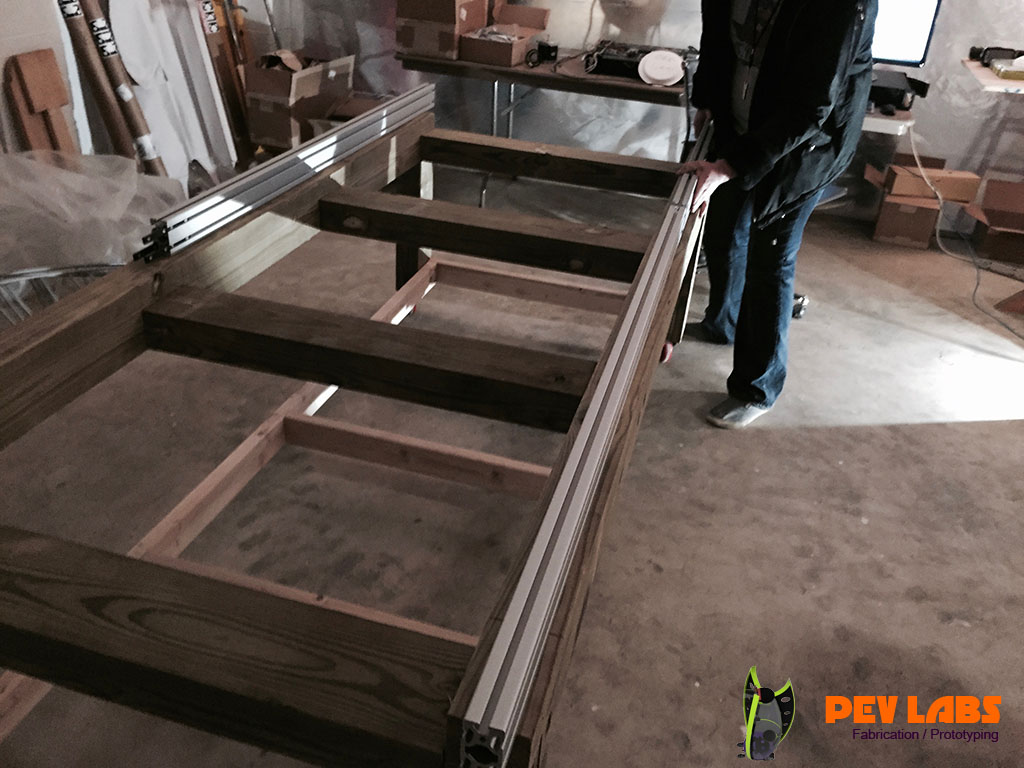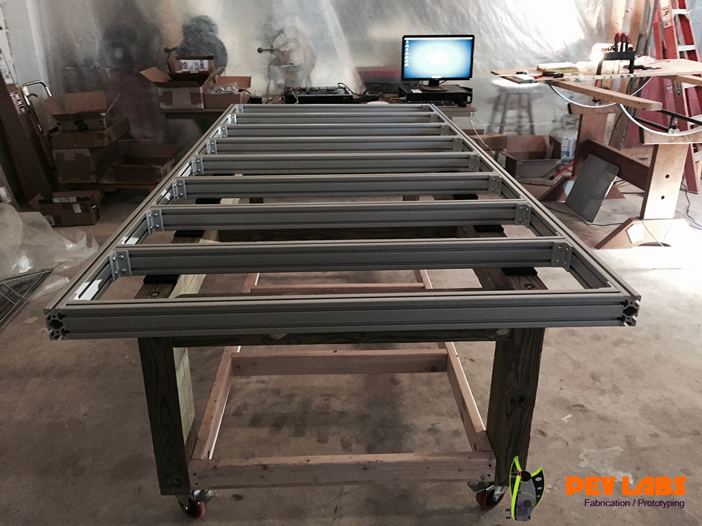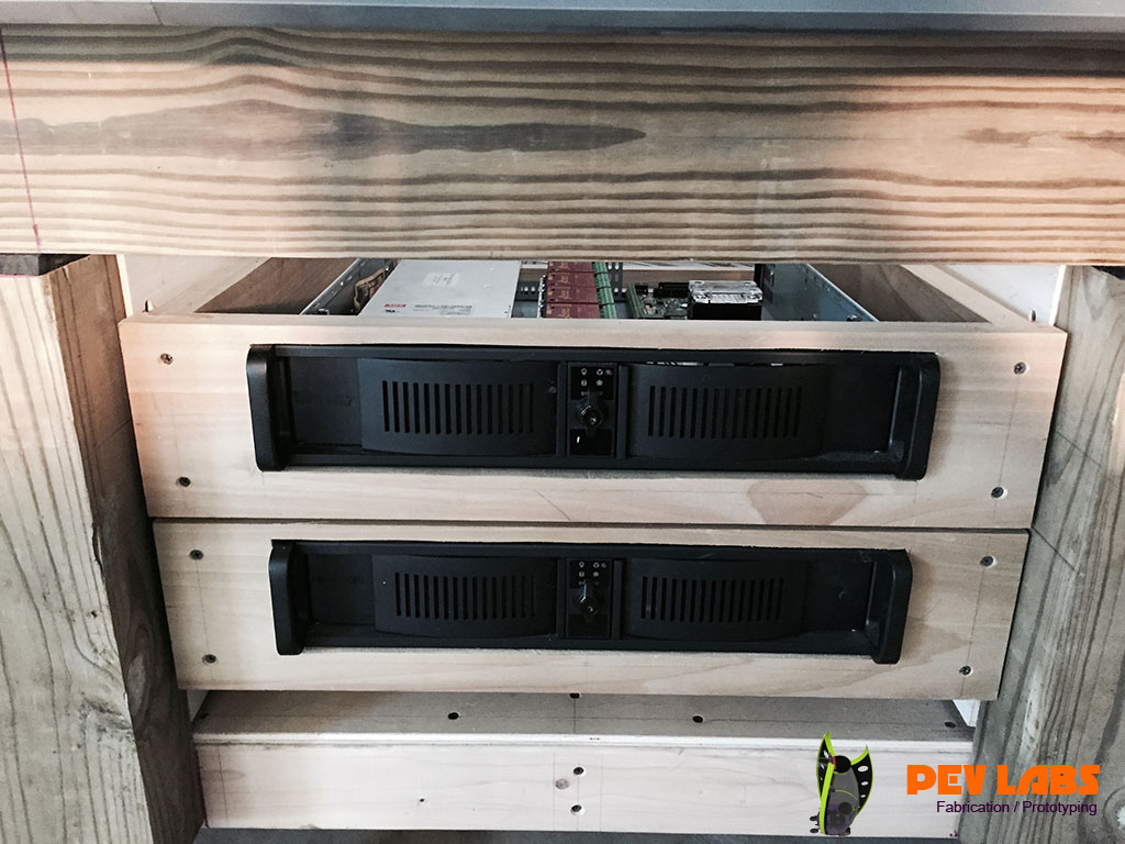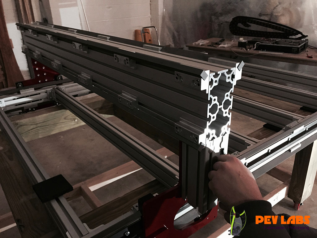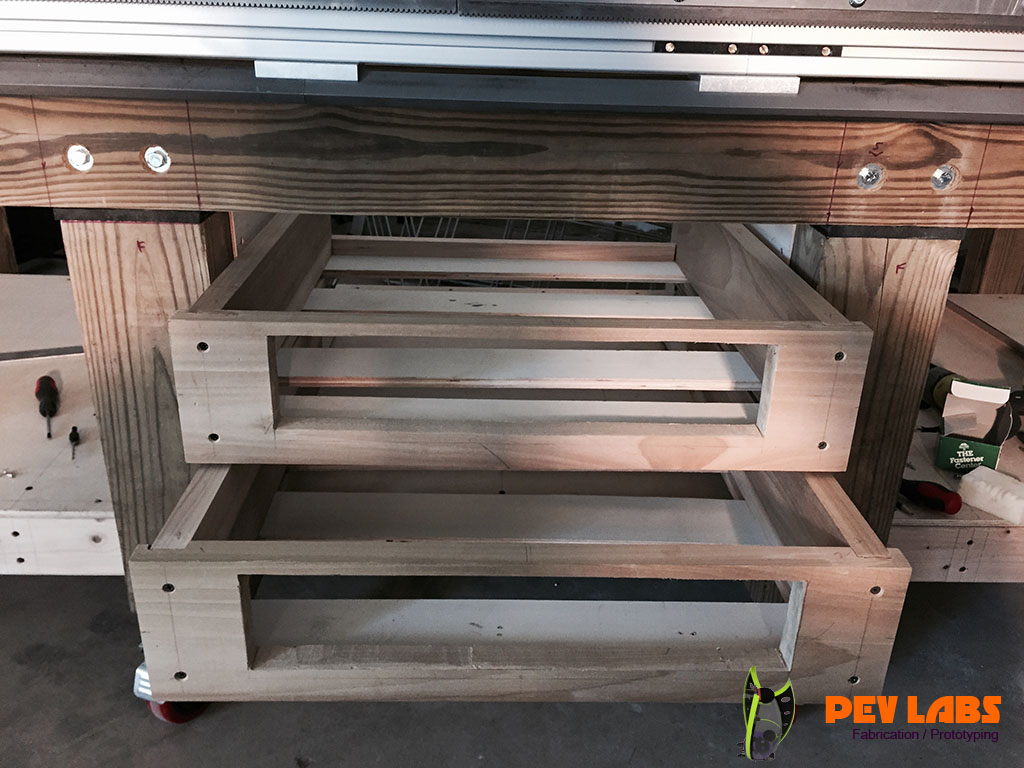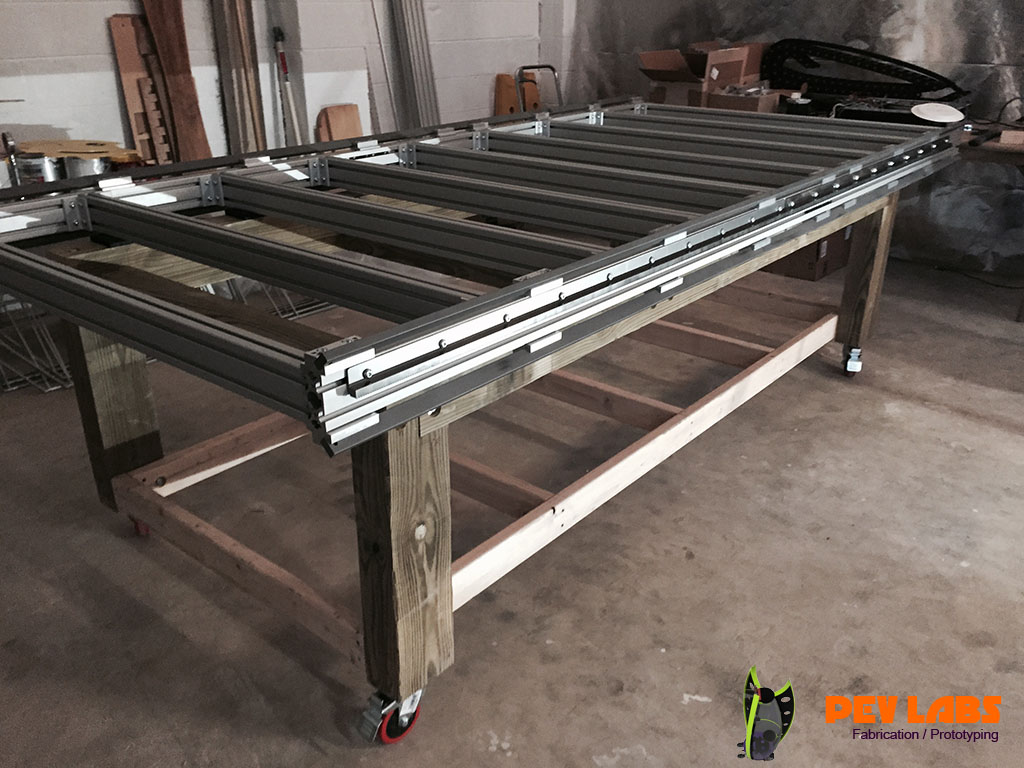 We design and build custom manufacturing machines. This is the build page for our 48" x 96" gantry style router has been going strong daily for nine years. Currently we are in the process of our 90 Watt CO2 laser build which you can follow here. This is our build page for large format 4'x8' gantry style CNC routing machine we made at Tinkersmiths Makerspace. Digital fabrication is the heartbeat of our CNC service offerings and Digital Fabrication Services.Powerful NEMA 34 stepper motors makes this thing a total workhorse. Five horse power, 2.2KW 220 volt spindle runs from 8000 to 24000 RPM. Custom electronics along with custom post processor coding in the open source Linux CNC software running on a custom made computer. Designing and building motion control systems is a favorite of ours. Originally built in 2016 this CNC machine is still the heart of our digital fabrication business today. Recently (2019) upgraded to a water cooled spindle. We are in the process of designing our vacuum table system along with a fourth axis. If you would like a custom CNC machine built for you please contact us.