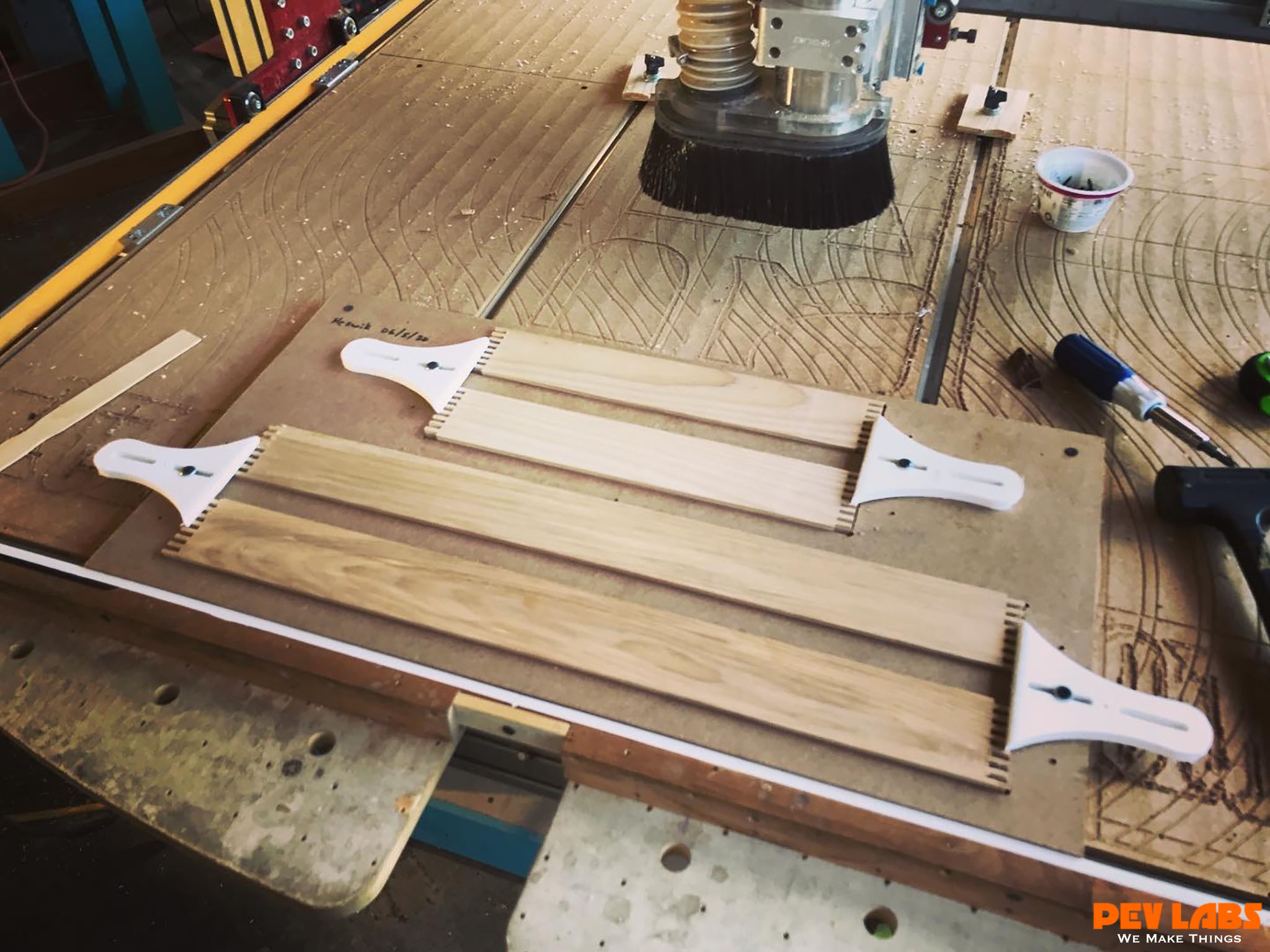 Jigging provides solutions for a variety of fabrication challenges. Keeping material in place or alignment while milling can be handled easily by fabricating a simply plywood or plastic jig. For us it is often more helpful to invest a small amount of time to mill a fixture for material holding than to do without. We are a big fan of shop jigs. Many of them are precisely and or easily milled on the CNC. Even some CNC operations require a jig securely hold the material in place for other CNC operations. CNC milled Forms are also super helpful. Safety can also be enhance by making a jig as a material hold-down to keep fingers away from blades, bits or end mills. Machine damage is also reduce when parts don't come loose during milling which can jam up a machine. If you need jigs made for your home or professional shop on our CNC milling machine, please reach out. We will be happy to help.
