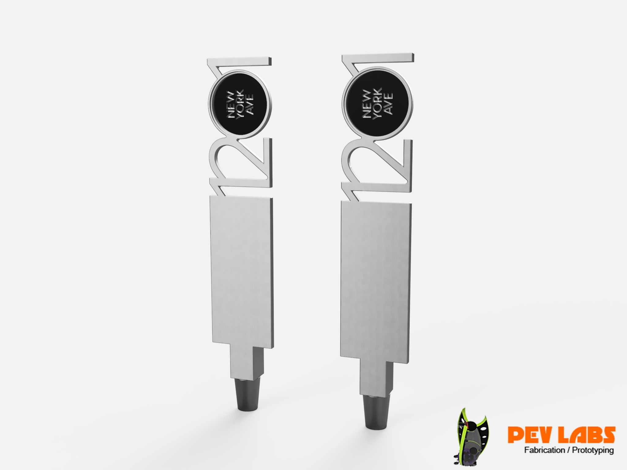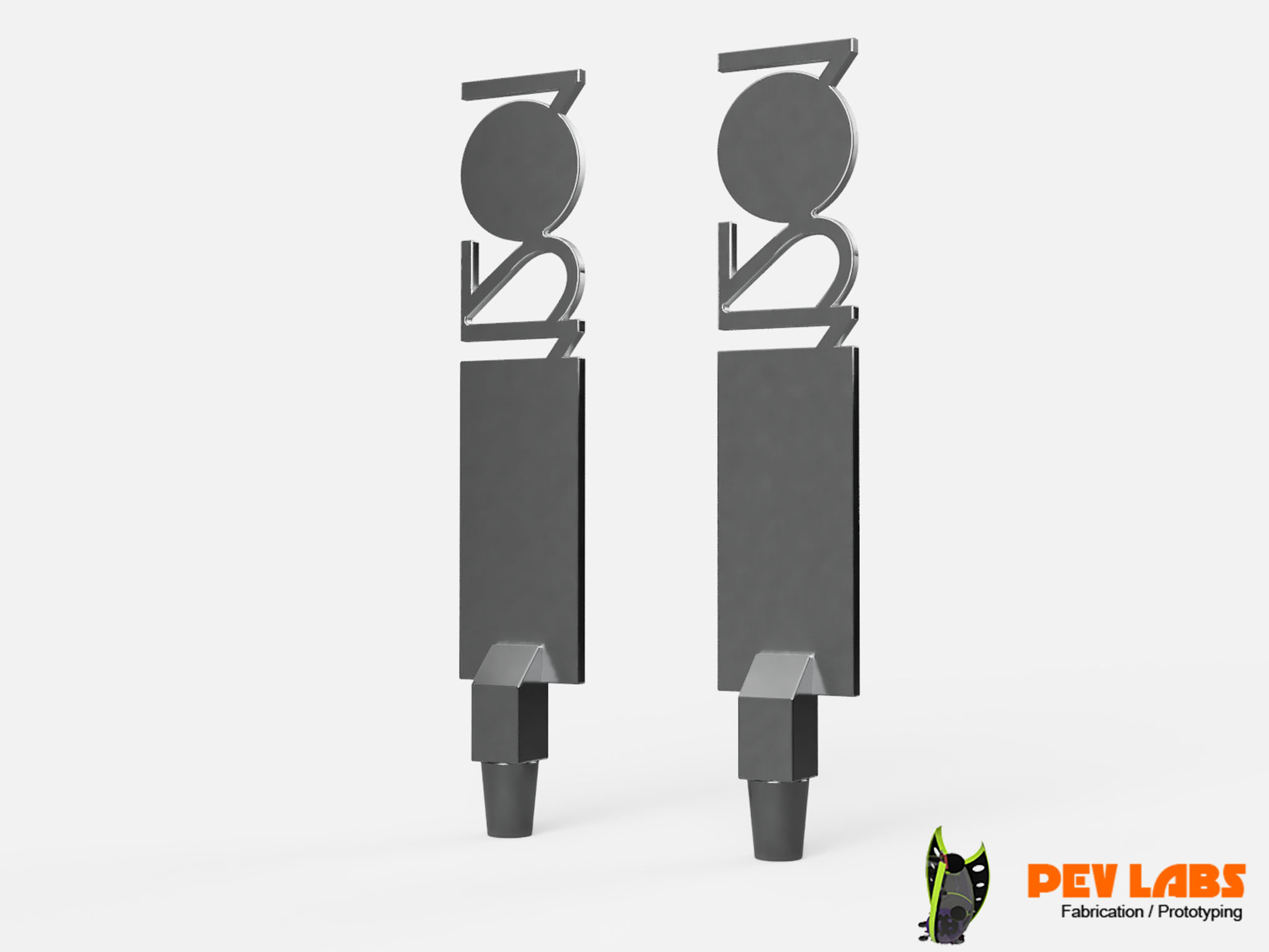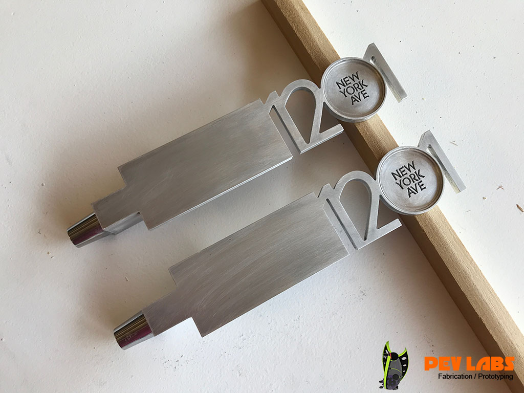 All aluminum metal tap handles produced from 0.25" aluminum plate with steel chrome ferrules.