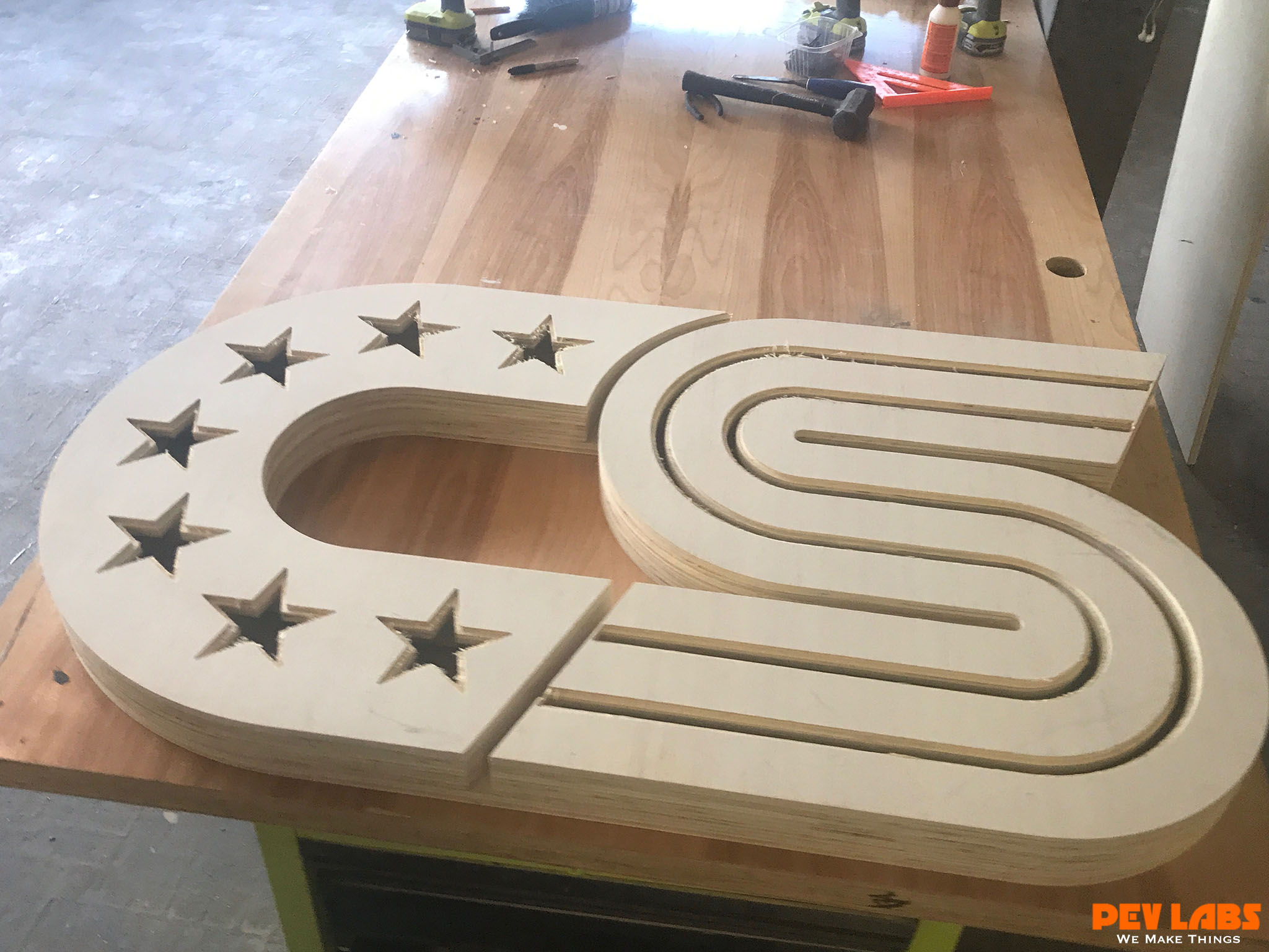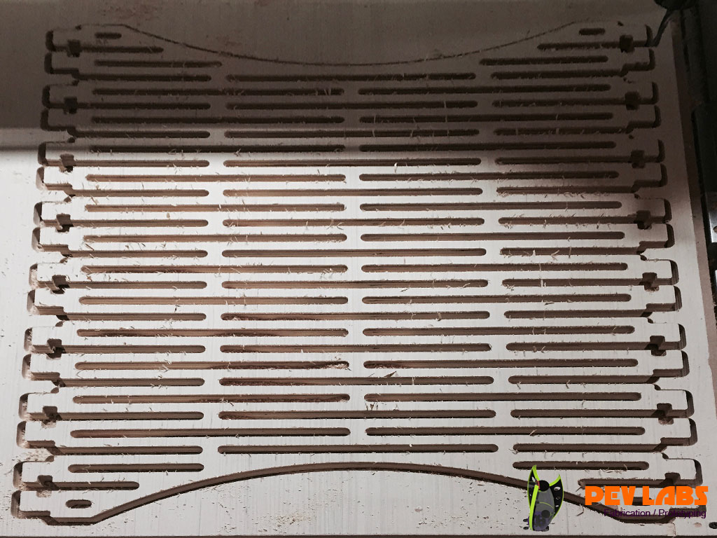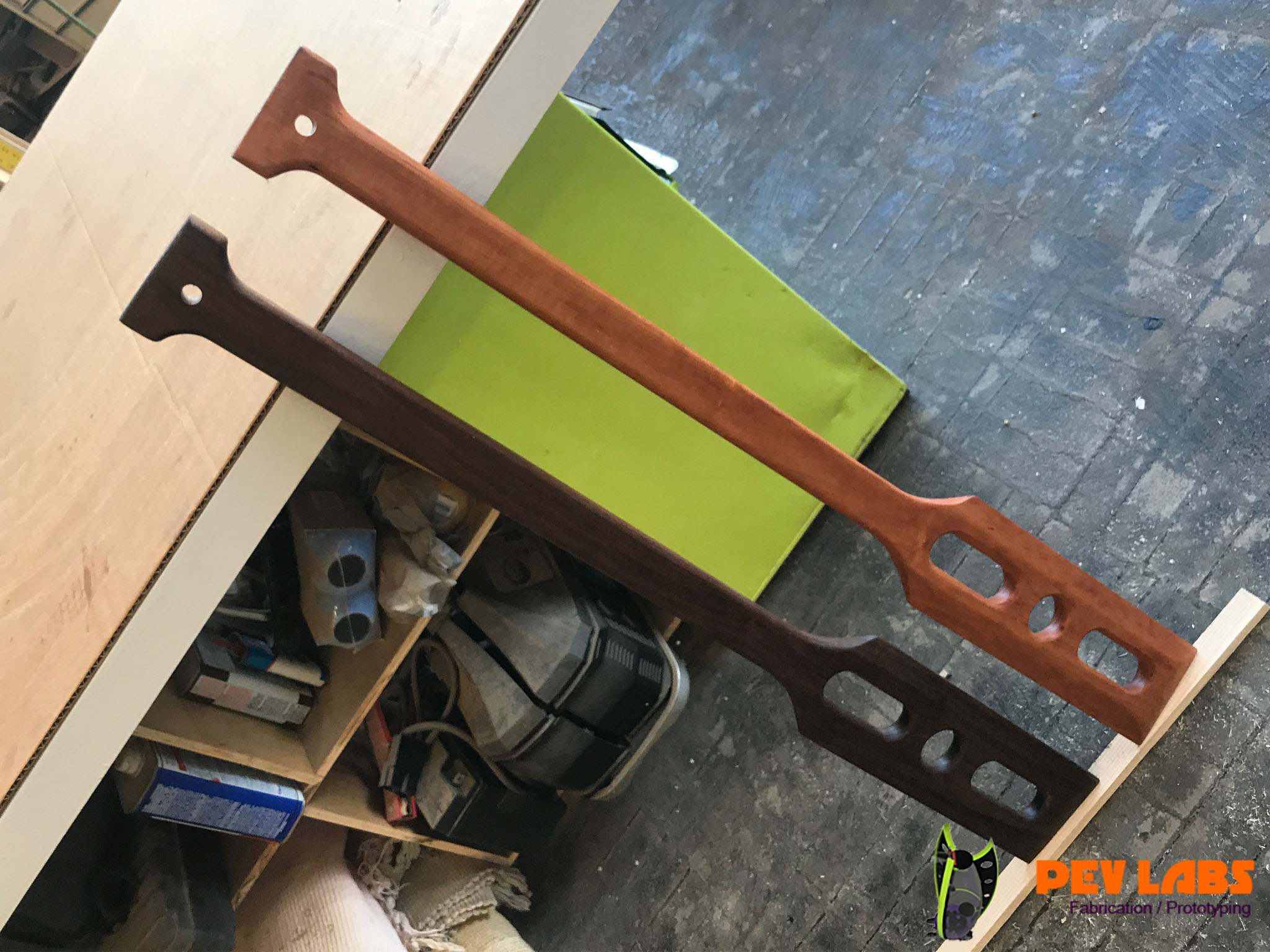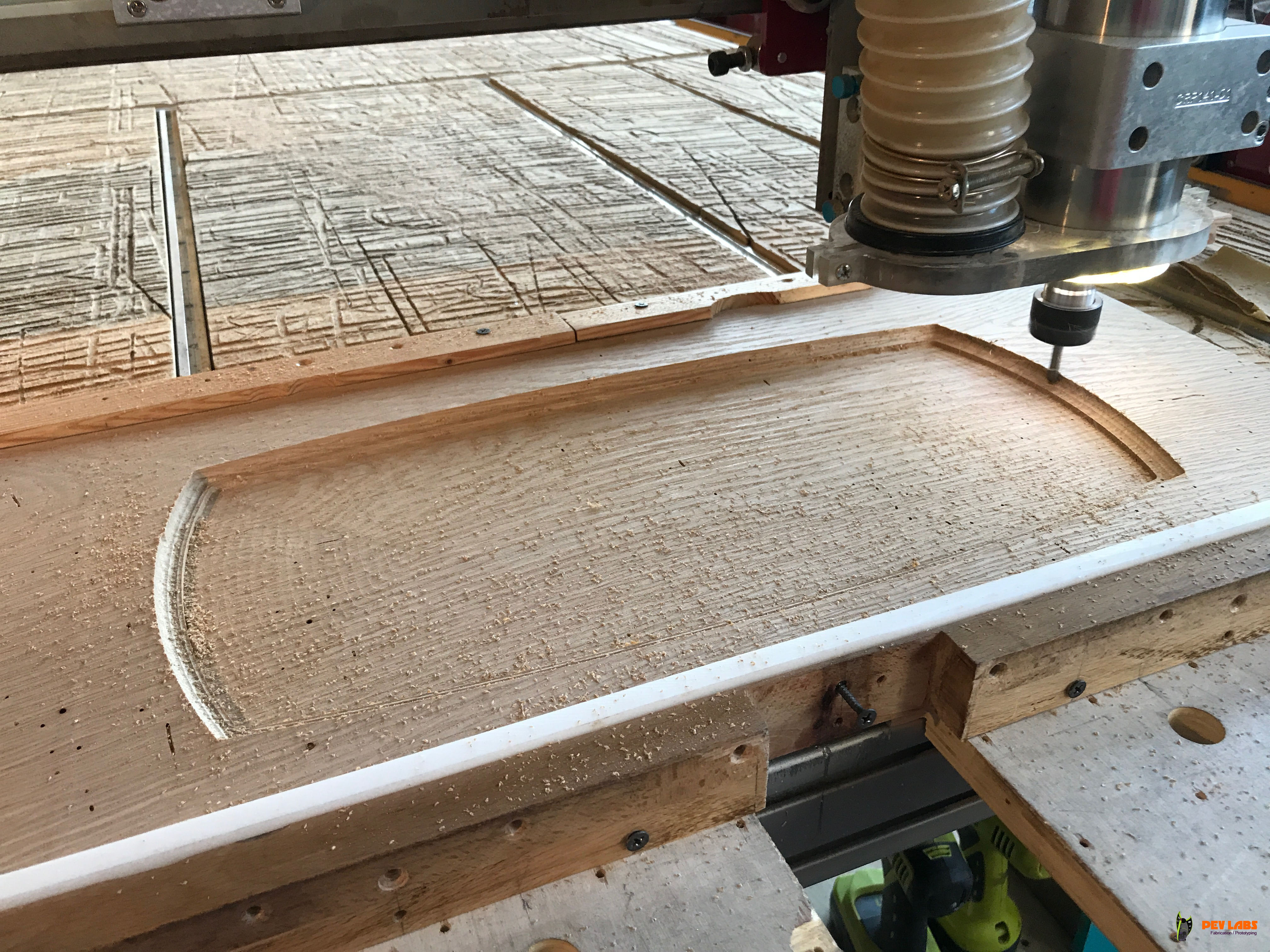 Milling wood of varying types and species is a common task we do both for our client contracts and for other craftspersons needed to increase production capacity. PEV Labs handles woodworking projects digitally with our Computer Numeric Controlled gantry based router and with traditional machinery such as table saw, bandsaw, shaper, router table, etc. Wood types range from plywood stock, both pre-finished and paint grade to locally harvested hardwoods. Common milling run tasks in plywood sheet for flatpack furniture, templates and jigs. Solid woods most often are walnut, cherry, maple. Imported lumber such as mahogany and Sapelli are fine. There is a well known antiquated timber supplier right next door if you want to add texture to a project. More complex wooden projects might make use of embossed objects such as brand logos, project boxes for electronic components and architectural objects. Engraving with resin fill is fun too.