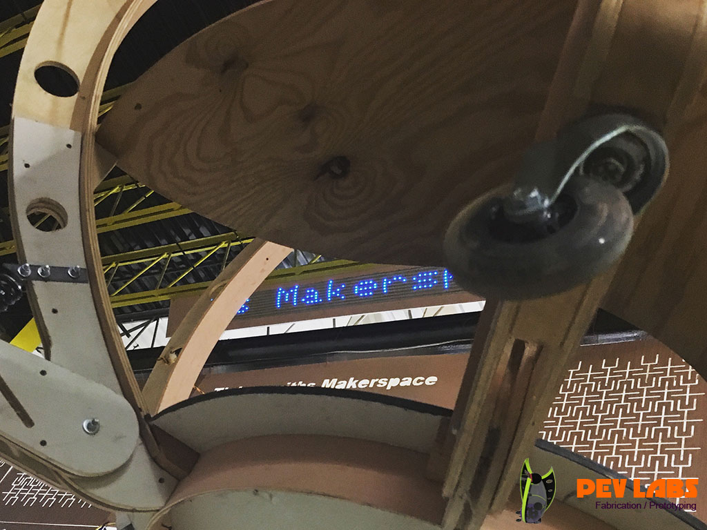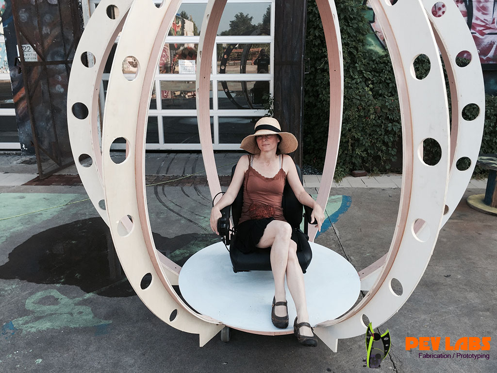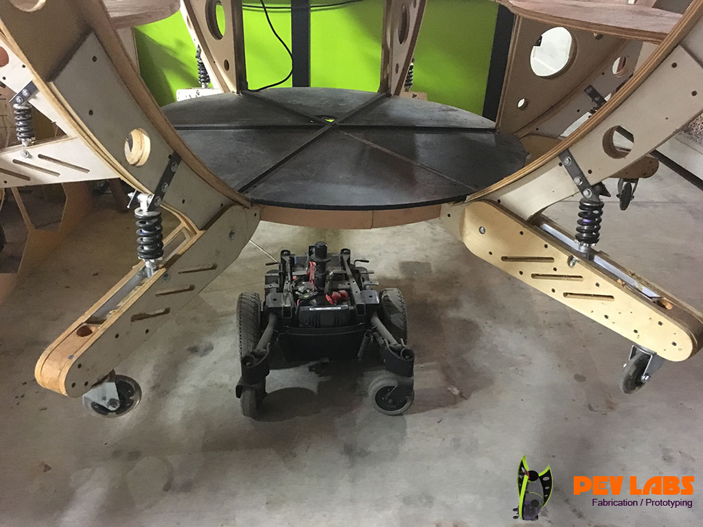 Fabrication of a Spherical Electric Vehicle (SEV) in Virginia. Built on an up-cycled used electric wheelchair. We Make Things, Interplanetary Things.