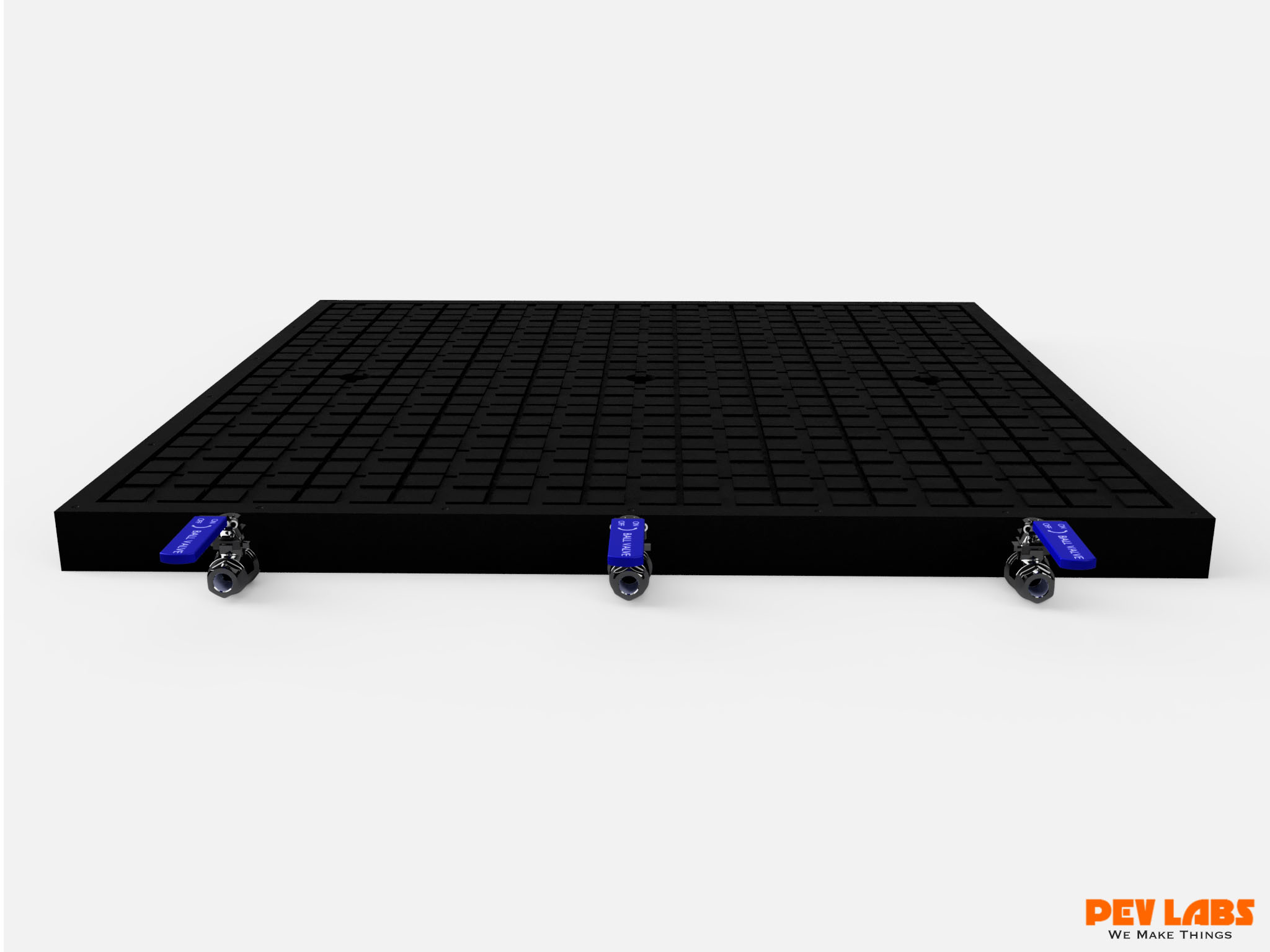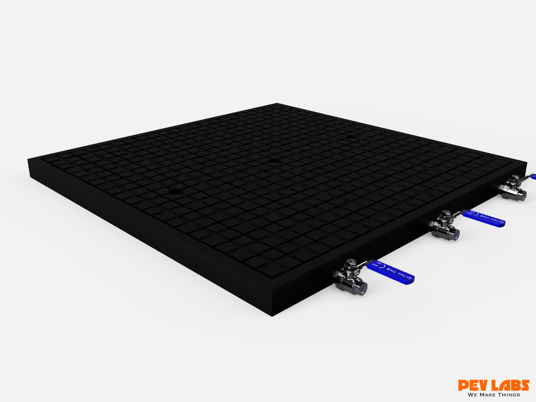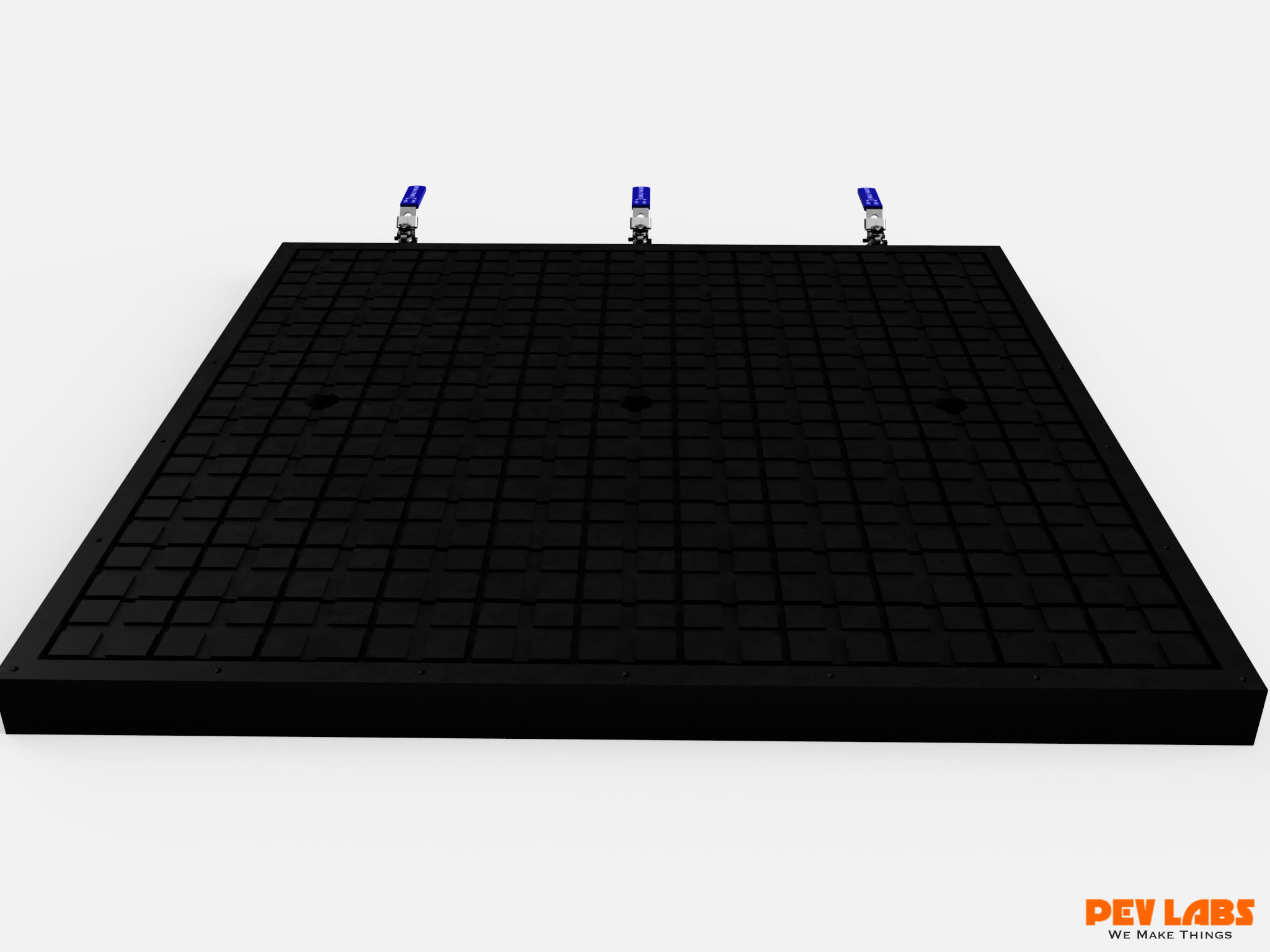 Custom designed Vacuum Table can made made to order in various sizes. This version has three zones, larger tables would most often have more. Made from black color core MDF and clear coated to seal in the vacuum which should only be applied on the top surface. Vacuum tables are well suited for material holding on CNC and other automated machinery to keep parts in place as the end mill cuts through leaving a part with no edge positioning. CNC machining for your personal or business small run manufacturing needs. Visit our DIY laser cutter engraver project build for another interesting design build.